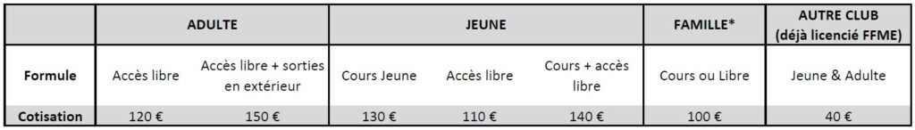 *Montant de la cotisation à partir du 3ème membre de la famille
